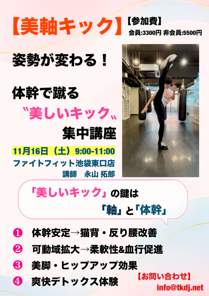 セミナー部門が自信をもって贈る!「美軸キック」集中講座を紹介いたします!!