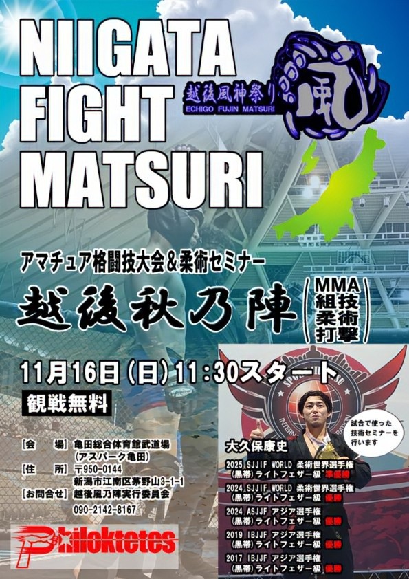 アマチュア修斗、グラップリング、柔術の試合が行われます。