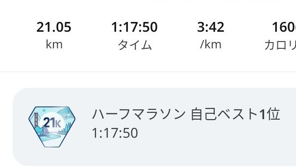 に出場予定です。そこで最近久しぶり21キロ走って1:17:00後半というタイムでした。坂などアップダウンがたくさんあるところでこのタイムを出せてるということは1:16:00台は多分恐らく出るはずです。