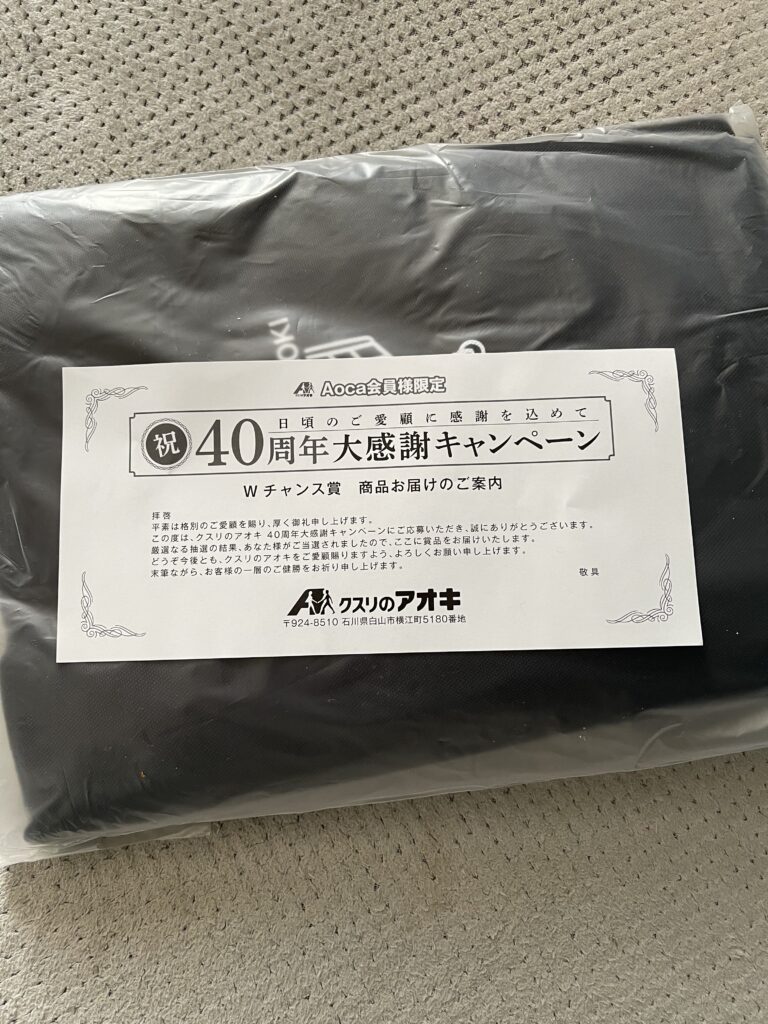 先日、自宅に郵便物が届いたので宛名を見てみると、いつも買い物でお世話になっている「クスリのアオキ」からの郵便物で品物は懸賞当選の品物でした😳✨