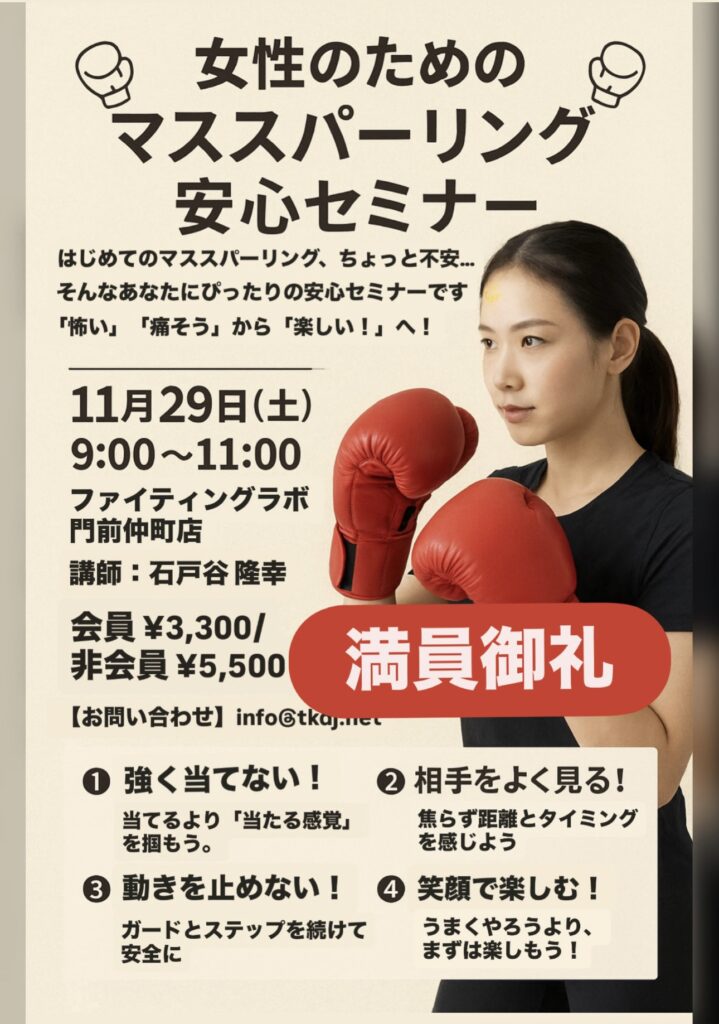 🥊【満員御礼】女性限定マススパーリングセミナーについて
