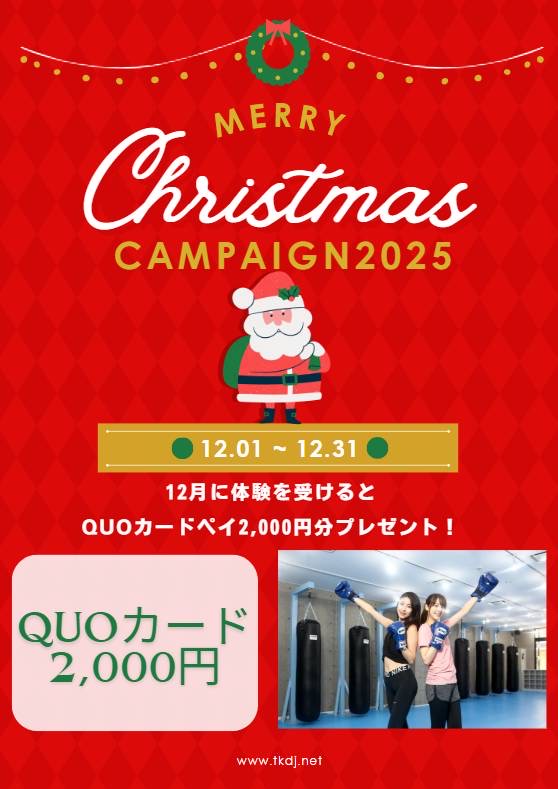 トイカツ道場ではクリスマスキャンペーンとして体験者の方に2,000円分のQUOカードをプレゼントしています
