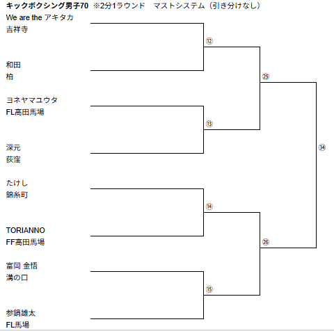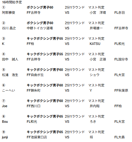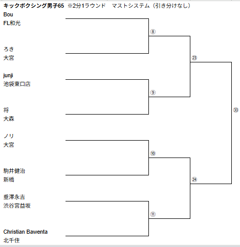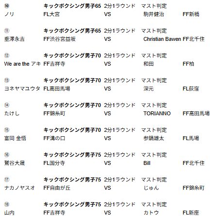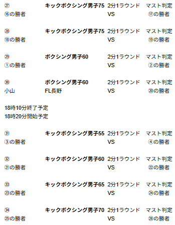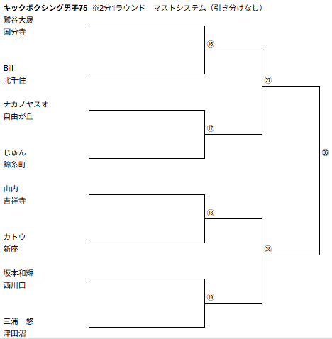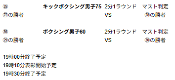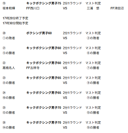 ※※※※男子キック75キロの19試合目に、坂本選手VS三浦選手の追加修正が入りました ※※※※