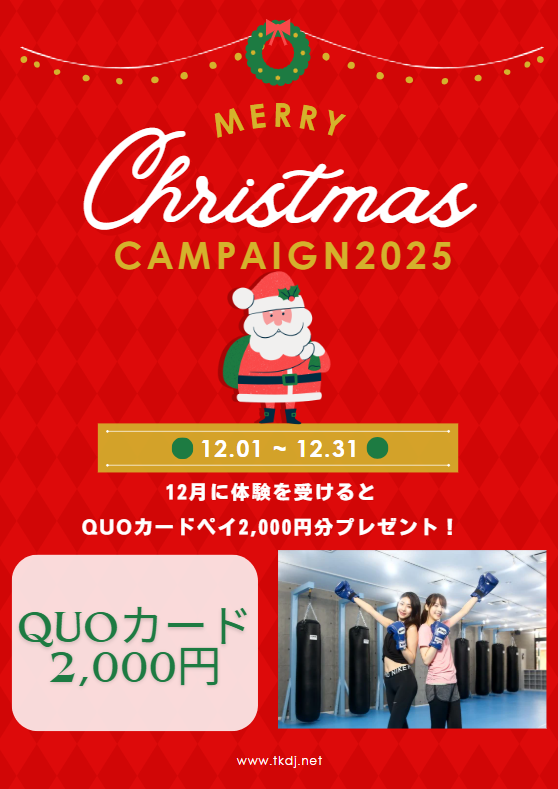 クリスマス”格闘技体験”キャンペーン開催中(12月)!無料体験をしてクオカードペイ2,000円分GET♪