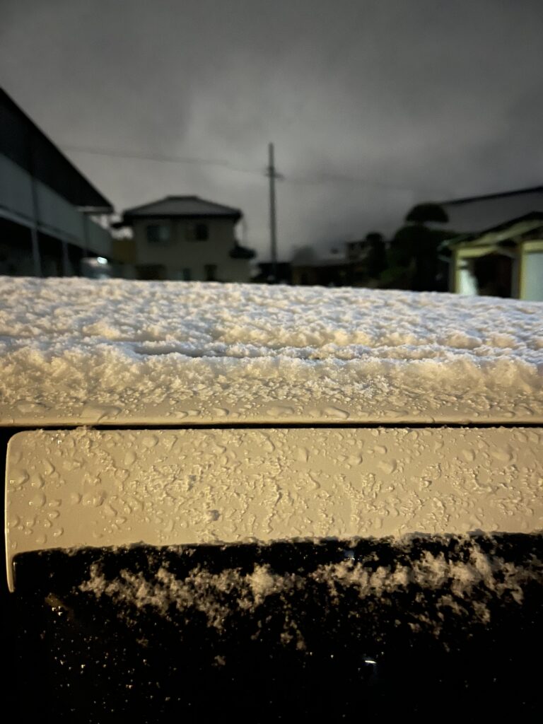 車の屋根にも薄ら積もりました🚗❄️