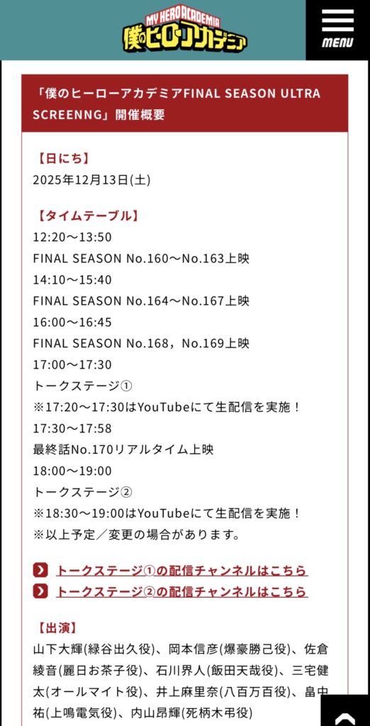 それに伴い、最終話放送に合わせて、映画館で最終シーズンから最終話までが一気に観れる上、舞台挨拶までみれるイッキ見上映が当選し、それに先日行ってきました!!