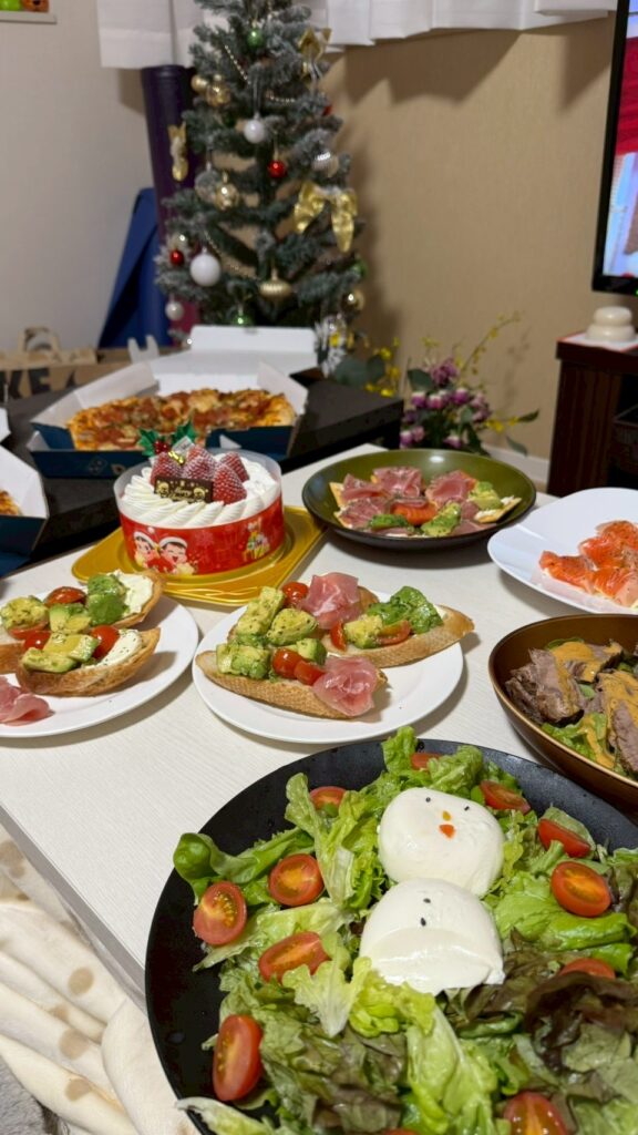 カマンベールチーズを半分に切って雪だるまなんかも作ってみました。