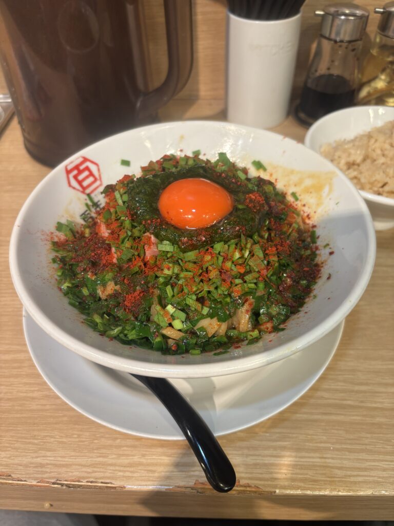 そして麺を全て食べ終わったら器に残っているタレにこのご飯をぶち込んで混ぜ混ぜして食べるます🐷もううますぎます🐷
