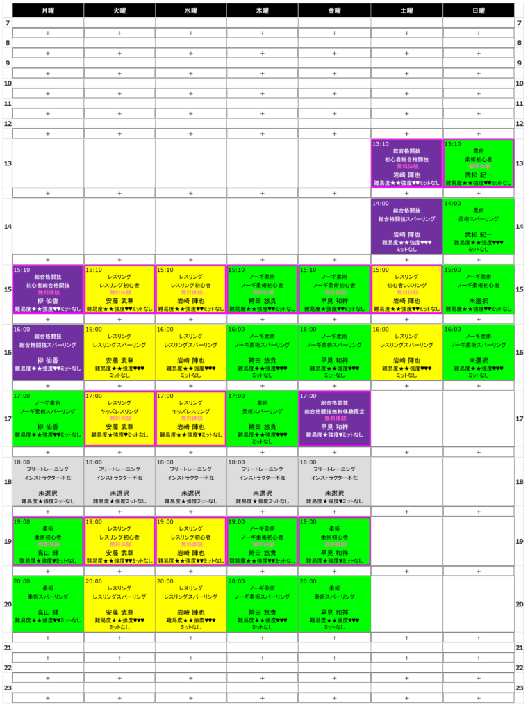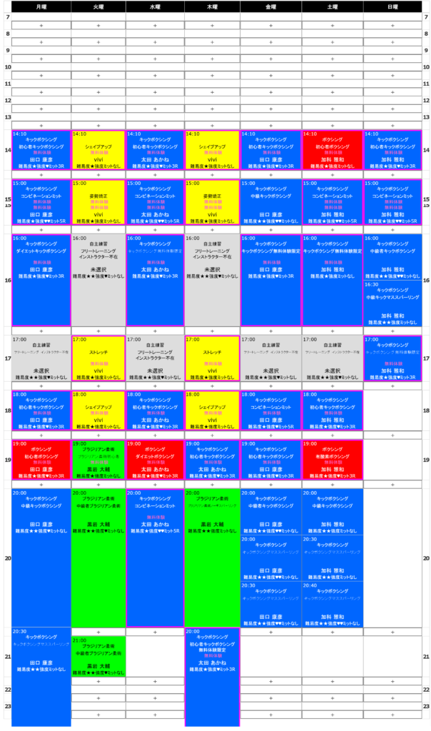 トイカツ道場時間割管理