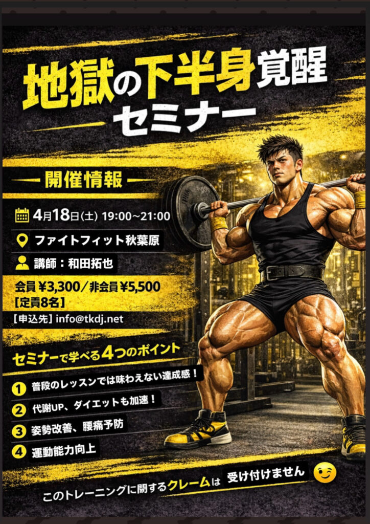 今回は下半身を徹底的に追い込む特別セミナーを開催します!