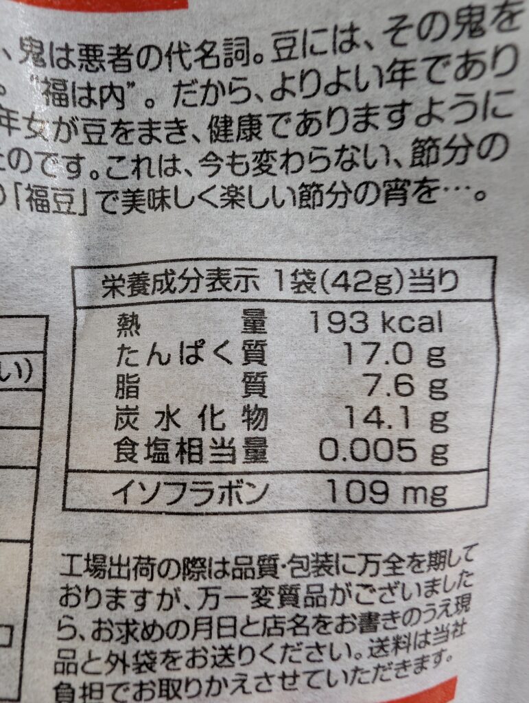 こちらの豆が大好きでして、節分とは言わずレギュラー化していただけないかなと毎年思っております。