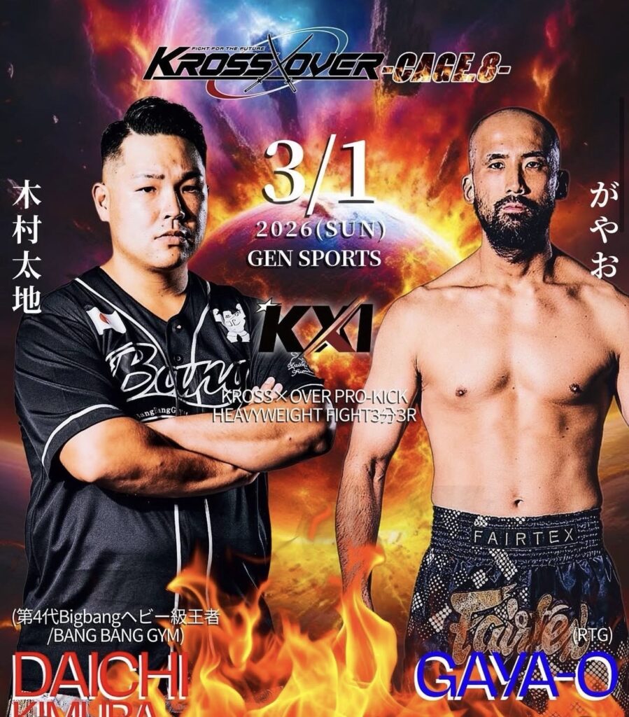 その後大久保にあるGENスポーツパレスに移動し、KROSS×OVERのメインイベントに出場する、練習仲間のがやお選手こと針谷インストラクターの応援へ!